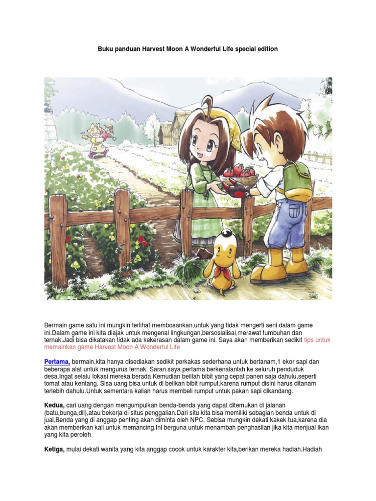 Padahal langka, tinggal klik link dibawah ini dan baca langsung buku panduan harvest moon back to nature ps1 yang kalian langsung bisa mainin di komputer kalian, link dibawah ini bersifat gratis. Buku panduan bahasa indonesia harvest moon ds dan ds cute (2 in 1)rp25.000: Bila sudah penuh, hadapkan ke sebuah bin (tempat penyimpanan) dan tekan kotak. Pasalnya, walau sekarang sudah banyak game harvest moon baru di konsol yang lebih canggih dengan desain lebih modern pula, masih sangatlah sulit untuk menggeser posisi game harvest moon: Jika pemutaran tidak segera dimulai, coba mulai ulang perangkat anda. Kami sangat berterima kasih bagi yang mau membantu mengembangkannya. Buku murah hot sale buku panduan harvest moon back to nature. Dvd game ps2 innocent life harvest moonrp8.000: Harvest moon back to nature adalah game simulasi pertanian terpopuler sampai saat ini. Back to nature yang dikeluarkan untuk konsol playstation di tahun 2000 ini mungkin adalah seri harvest moon yang tersukses dan terbaik. Sale buku ps2 harvest moon wonderful liferp60.000: Untuk ini kamu memerlukan harvest basket dan final rucksack. Kamu bisa menyimpan bijih galianmu ke harvest basket.